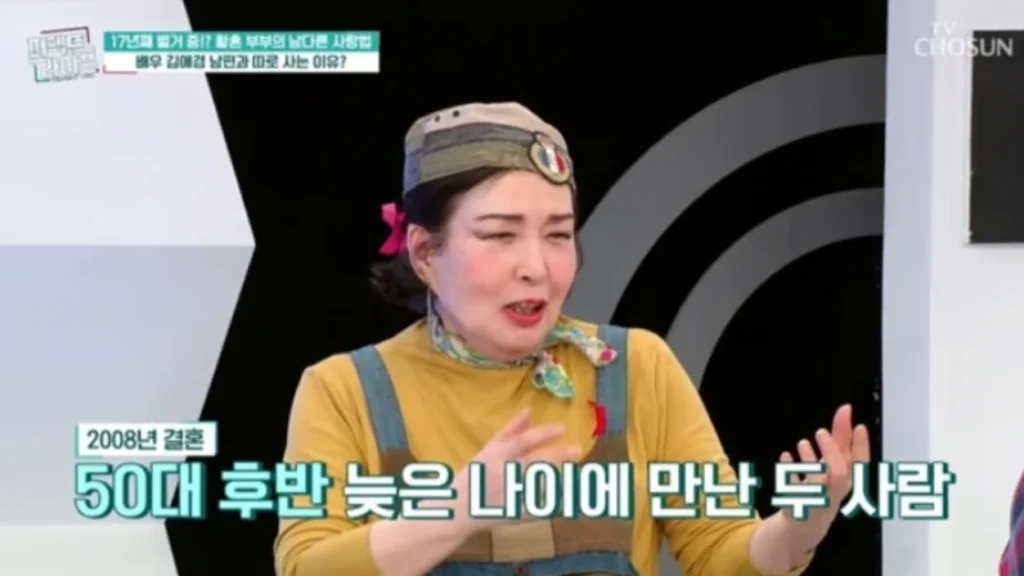 하지만 이어진 고백은 무거웠습니다. 2008년, 50대 후반의 나이에 5살 연하의 남편과 결혼한 김애경은 “결혼은 생각조차 없었다”며 솔직한 심경을 밝혔습니다. 사랑이라 믿었던 감정이 흔들렸던 순간도 있었다고 고백했습니다.